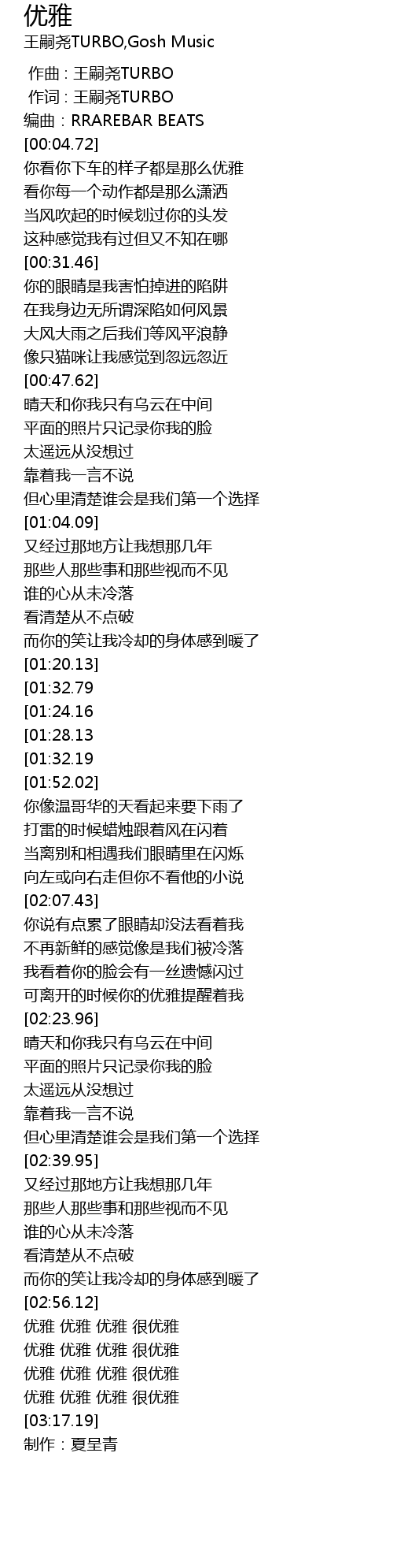 | [02:56.43] | 优雅 优雅 优雅 很优雅 |