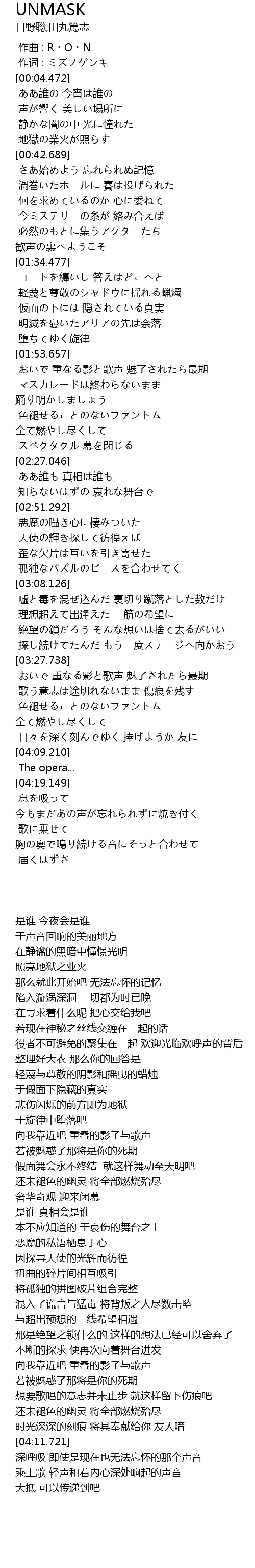 | [01:42.989] | 仮面の下には 隠されている真実 |