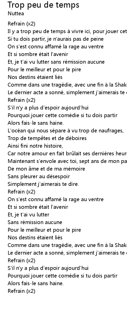 | 歌曲 | Trop peu de temps |