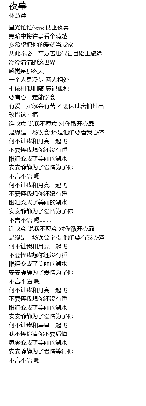 | [00:17.96] | 星光忙忙碌碌 低垂夜幕 |