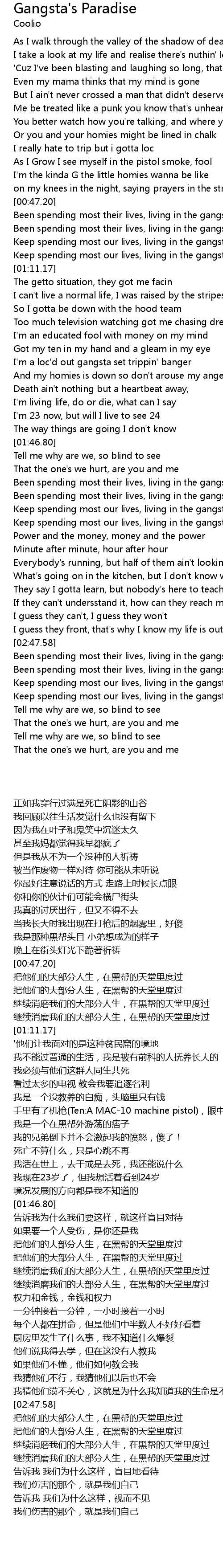 Been spending most their lives, living in the gangsta's paradise |