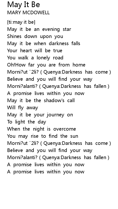 | [00:51.242] | Morni?ut ¨2li?(Quenya:Darkness has come) |