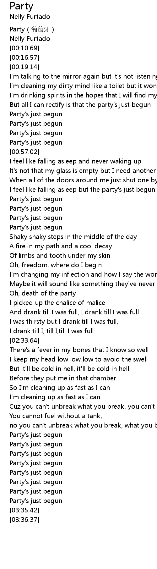 | [00:40.40] | But all I can rectify is that the party' s just begun |