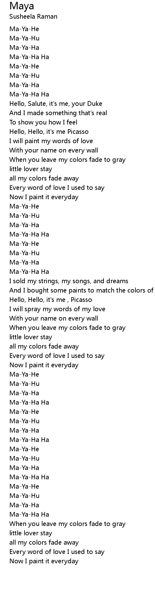Maya 歌词
