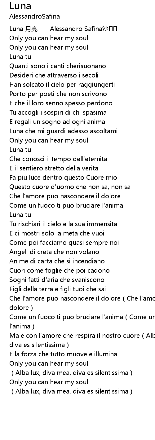 | [00:00.00] | Luna 月亮 Alessandro Safina沙�� |