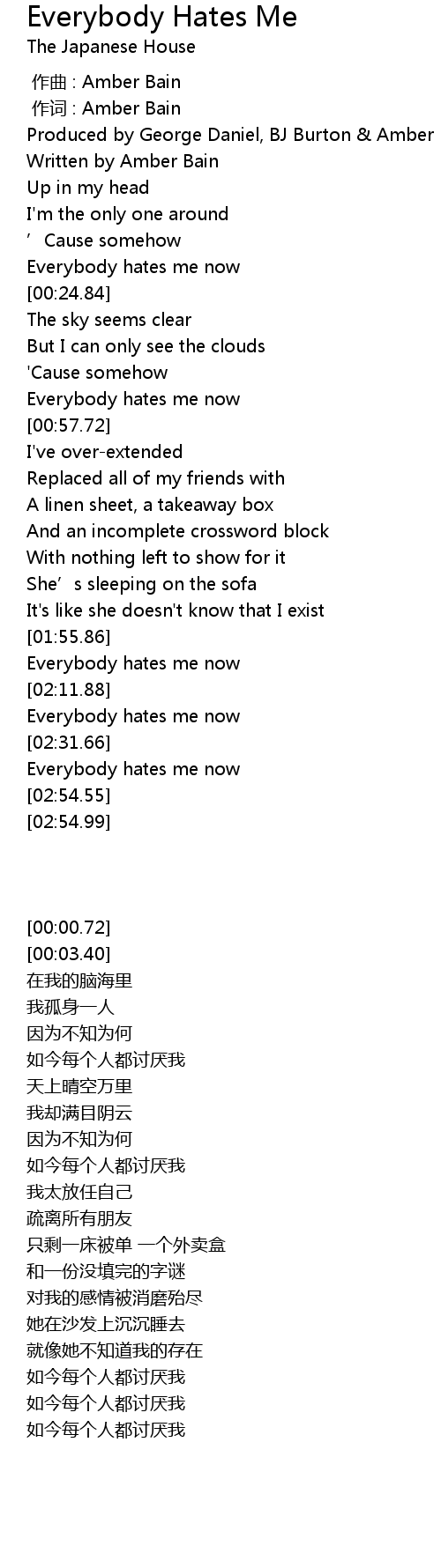 | [02:42.16] | Everybody hates me now |