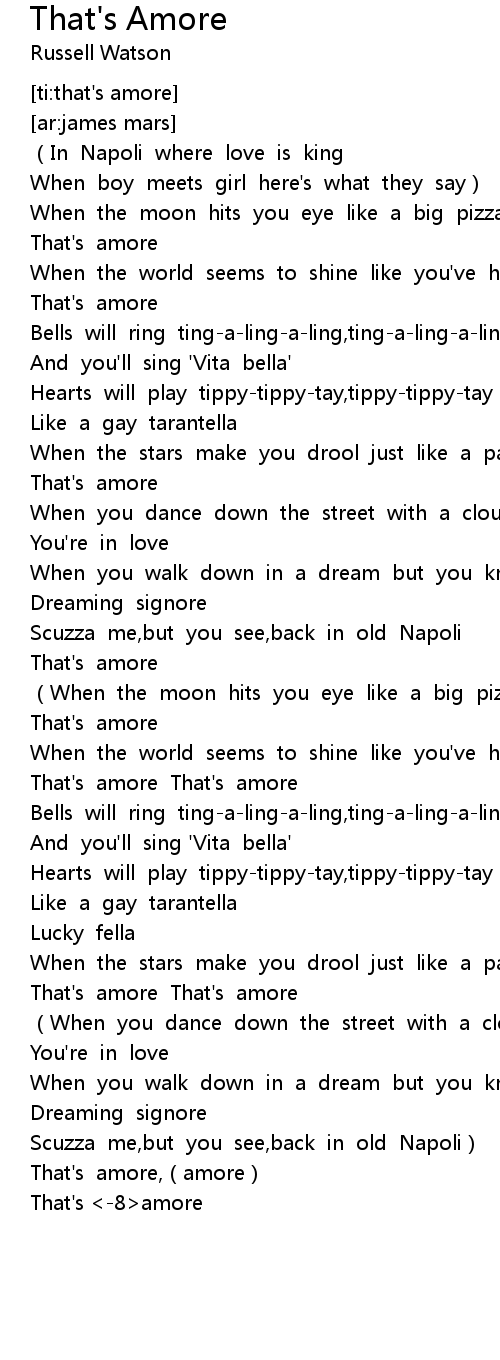 | [01:36.45] | When the moon hits you eye like a big pizza pie |
