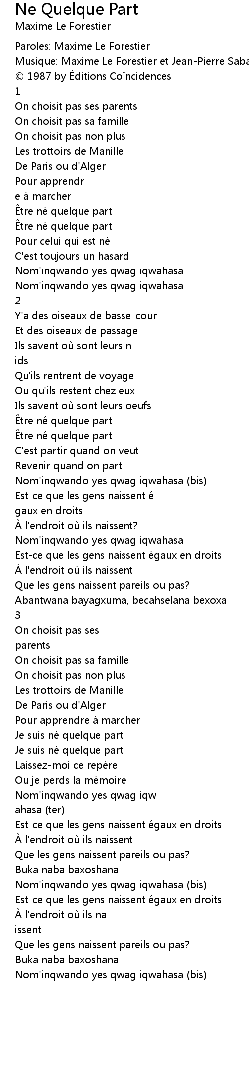 | Musique: Maxime Le Forestier et Jean-Pierre Sabar | |