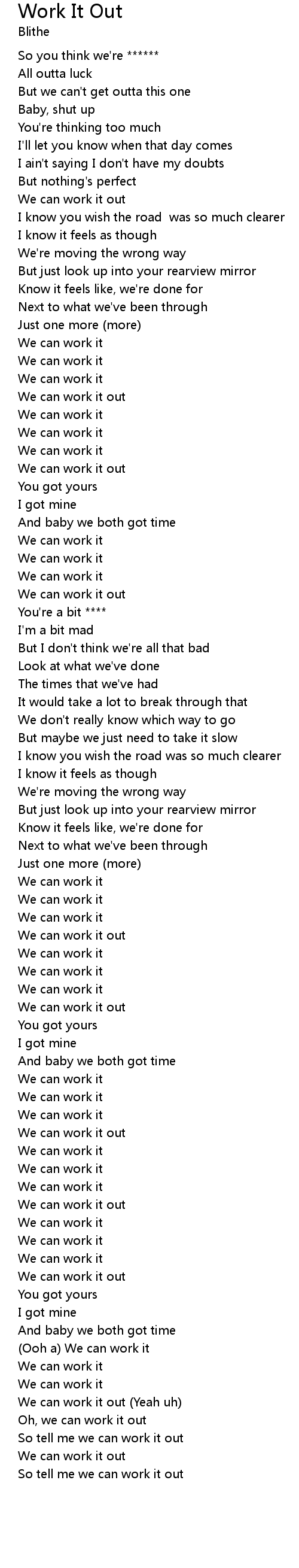 We can work it out (Yeah uh) |