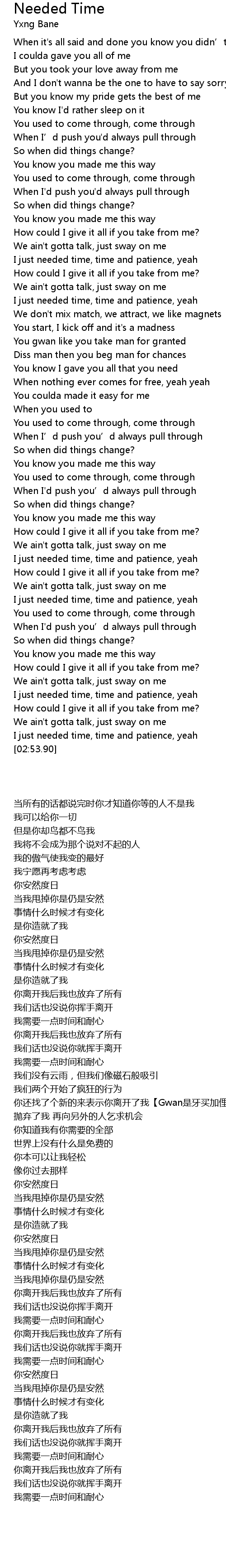 | [02:49.98] | I just needed time, time and patience, yeah |