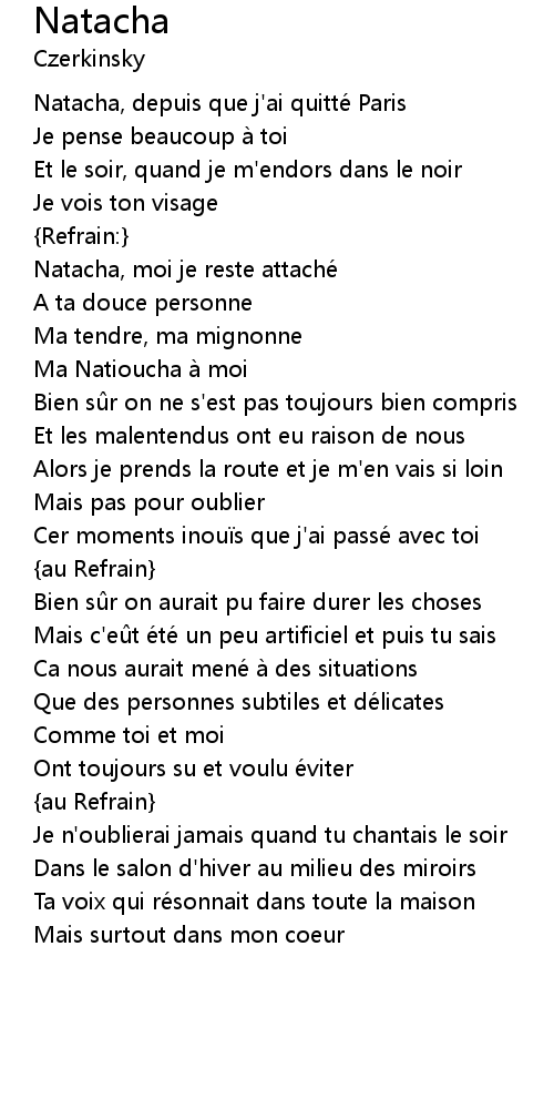 | Natacha, depuis que j' ai quitte Paris | |