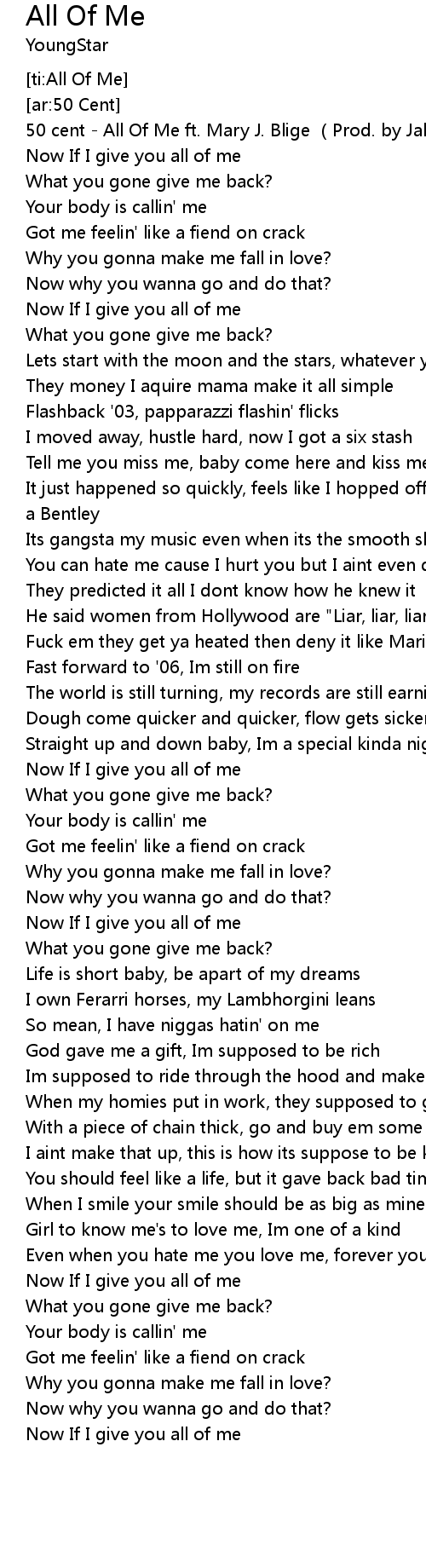 | [00:01.33] | 50 cent - All Of Me ft. Mary J. Blige (Prod. by Jake One) |