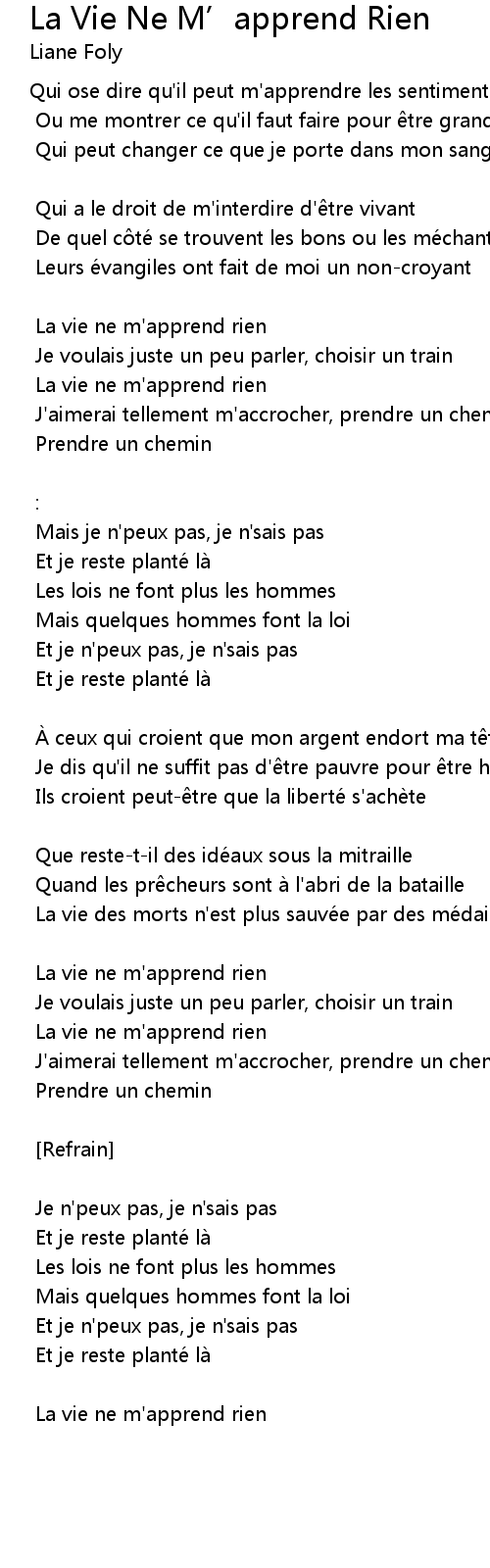 | 歌曲 | La Vie Ne M’apprend Rien |