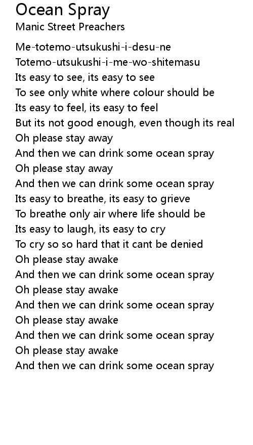 And then we can drink some ocean spray |