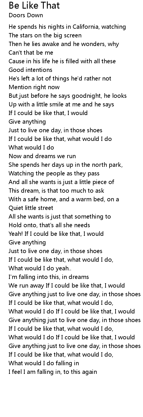 If I could be like that, what would I do |