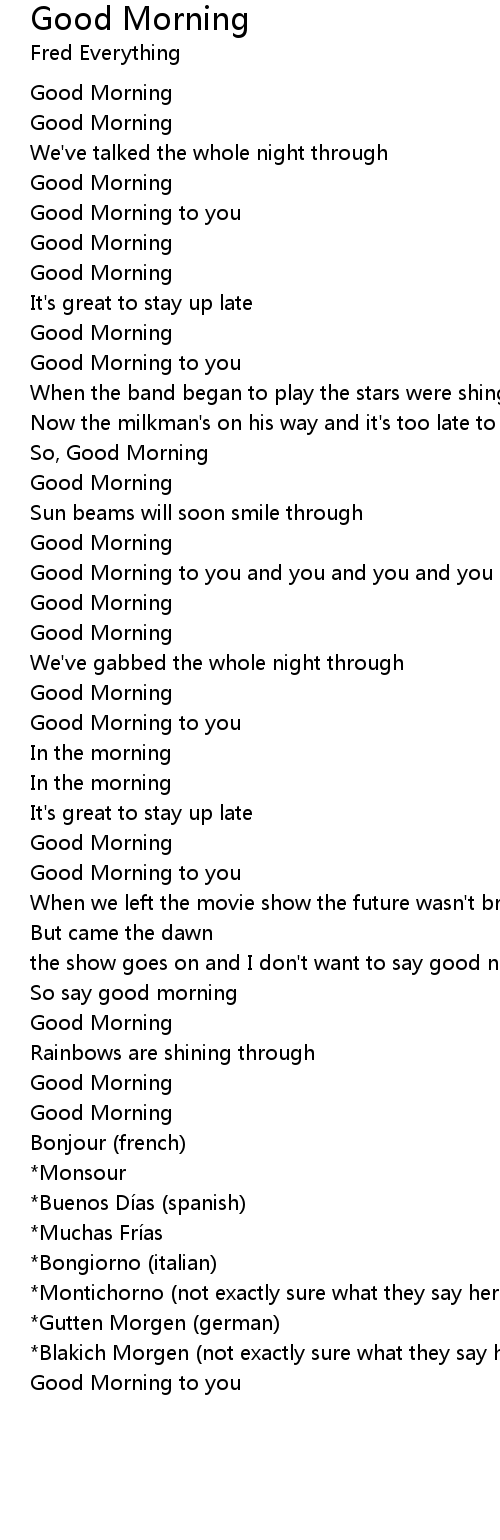 | Good Morning to you and you and you and you | |