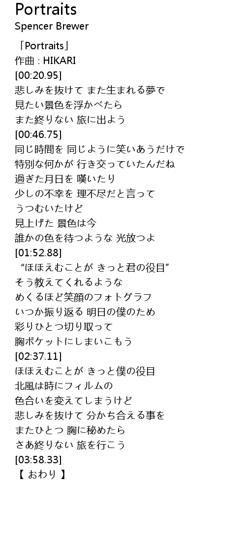 | [00:01.95] | 「Portraits」 |