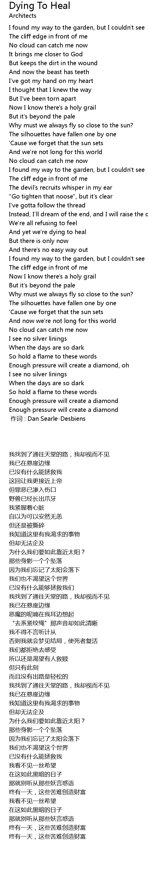 | 歌曲 | Dying To Heal |