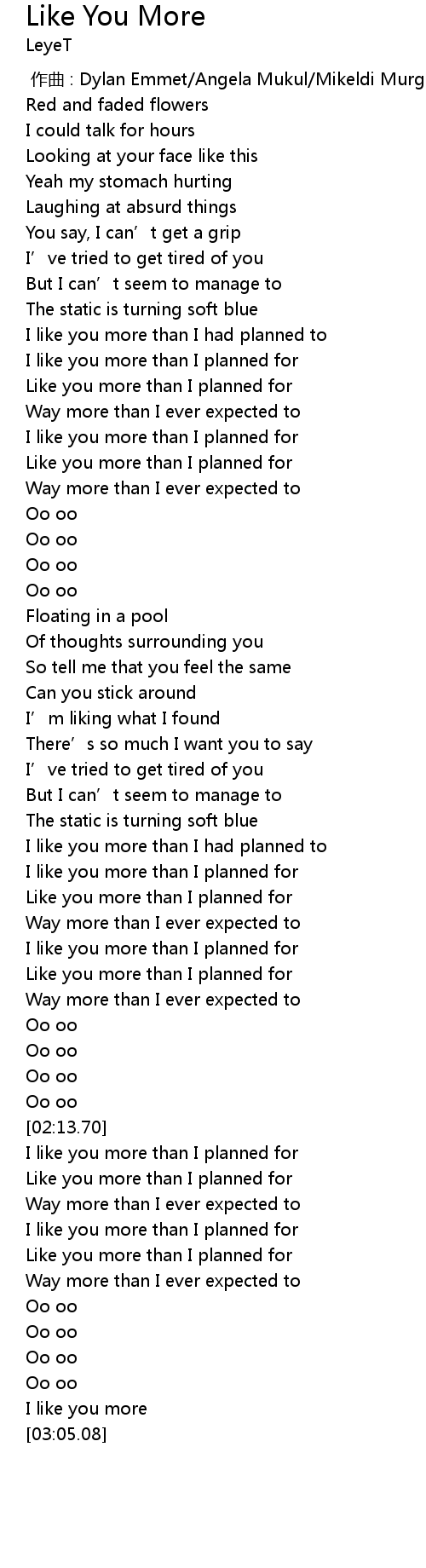 | [03:02.98] | I like you more |