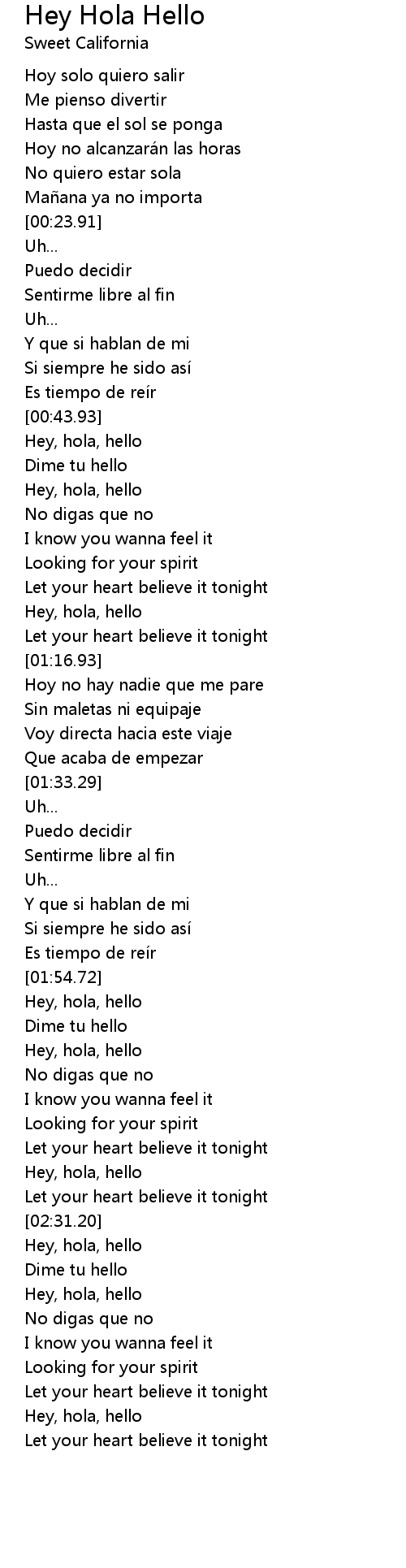 | [02:19.76] | Hey, hola, hello |