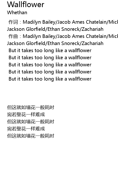 | [00:02:250] | 作词:Madilyn Bailey/Jacob Ames Chatelain/Mick Coogan/London Jackson Glorfield/Ethan Snoreck/Zachariah |