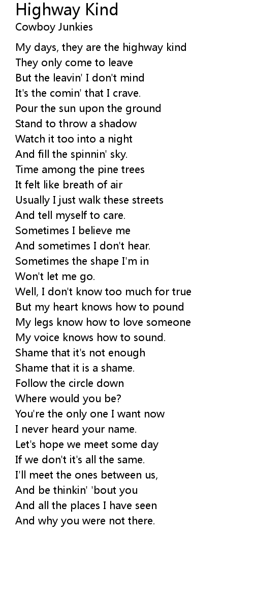 My days, they are the highway kind |