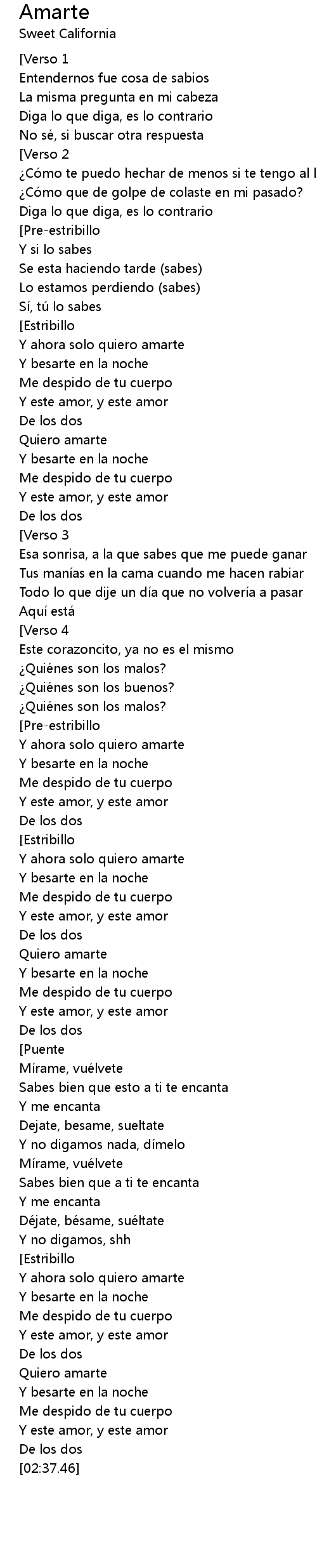 | [00:19.14] | Có mo te puedo hechar de menos si te tengo al lado? |