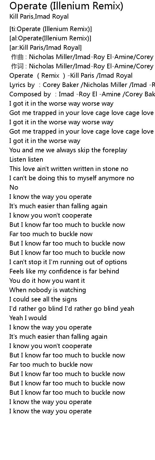 | [00:00.00] | Operate Remix Kill Paris Imad Royal |