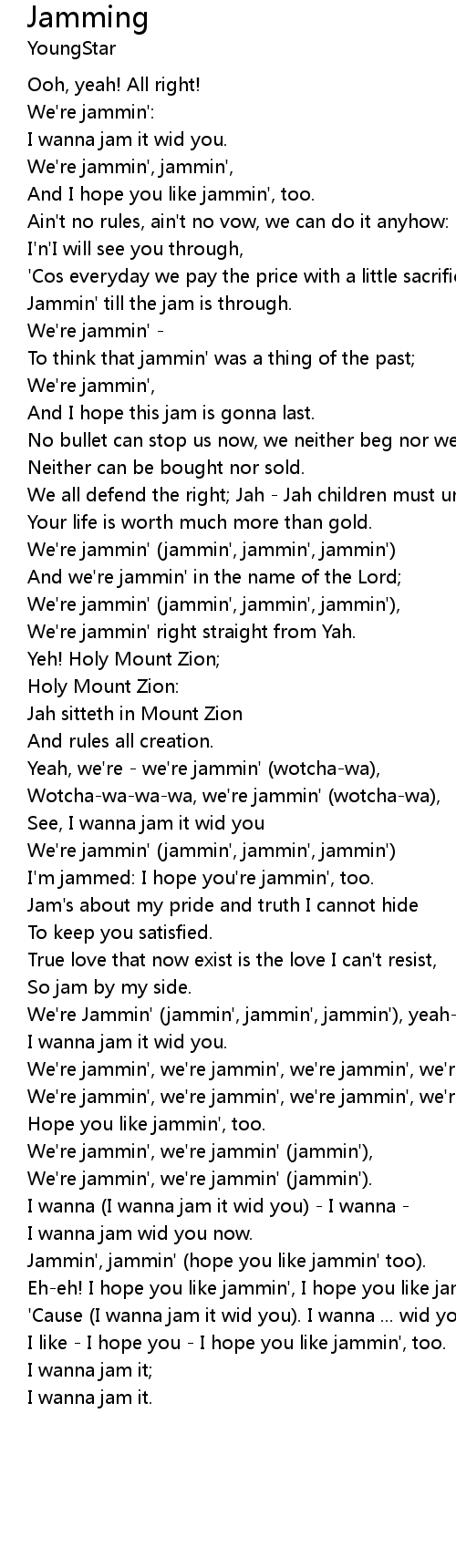 Jammin', jammin' (hope you like jammin' too).