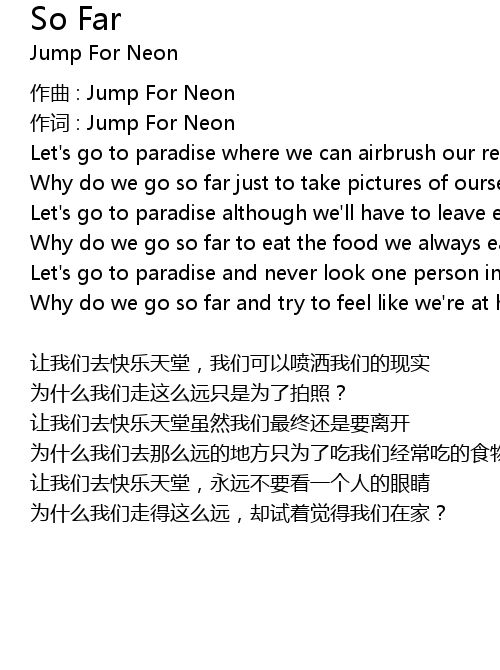 | Let' s go to paradise although we' ll have to leave eventually | |