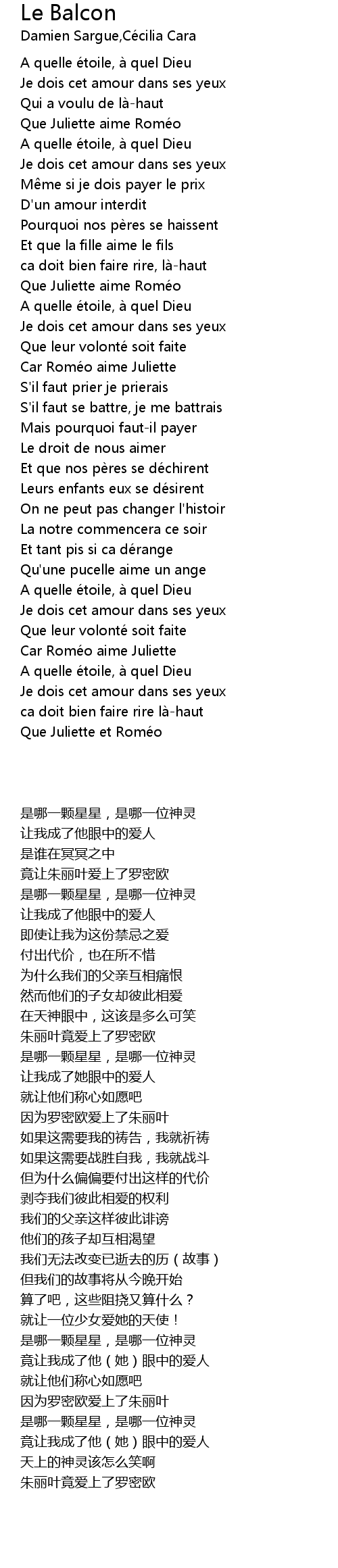 | 歌曲 | Le Balcon |