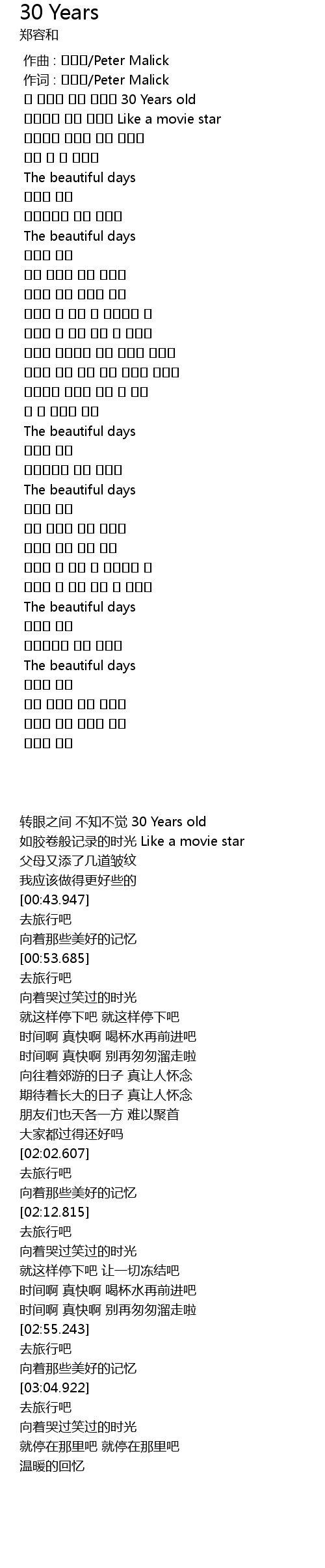 | [00:15.743] | 转眼之间 不知不觉 30 Years old |