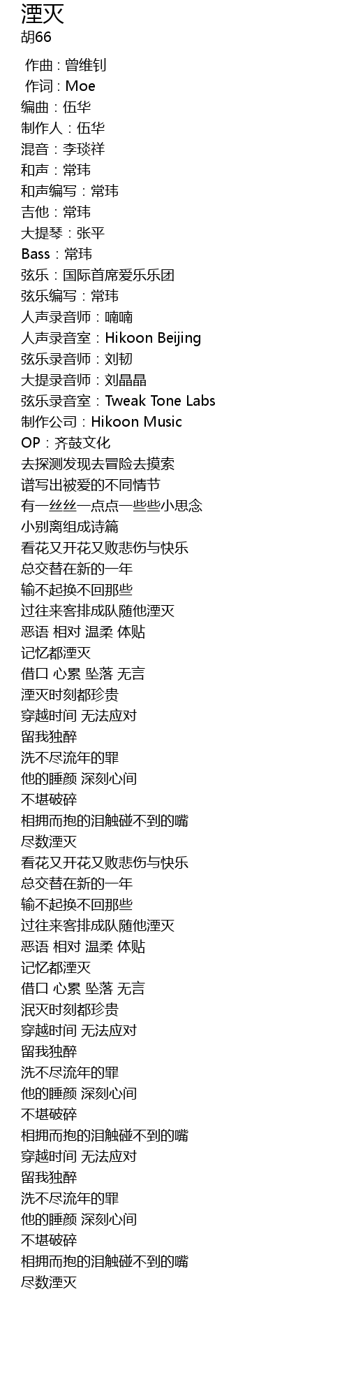 | [00:45.07] | 记忆都湮灭 |