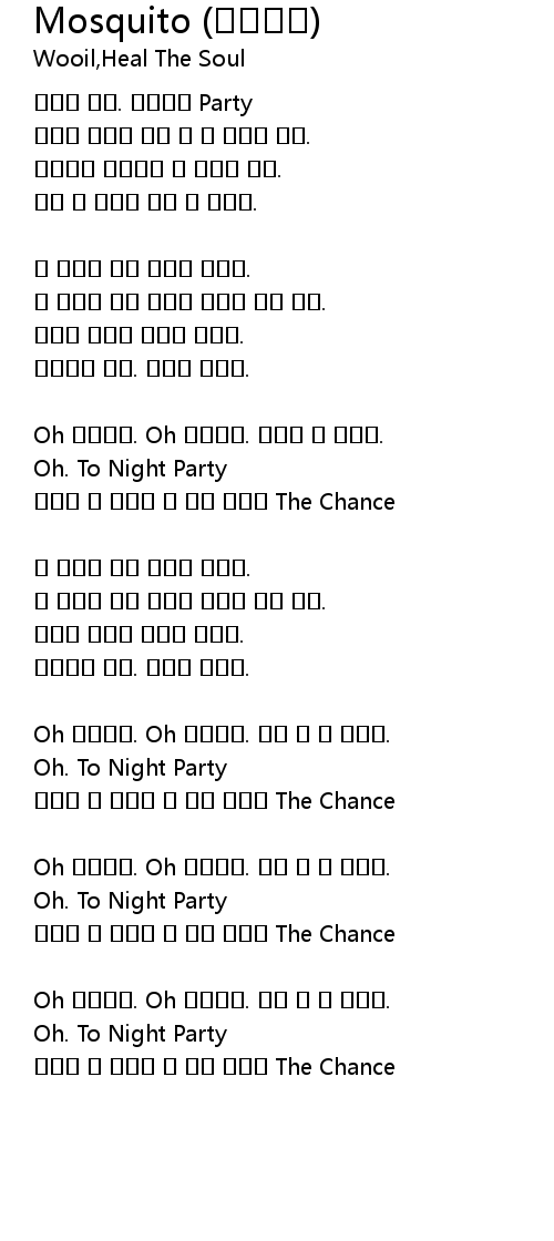 Oh 모스키토. Oh 모스키토. 돌아 갈 수 없다네. |