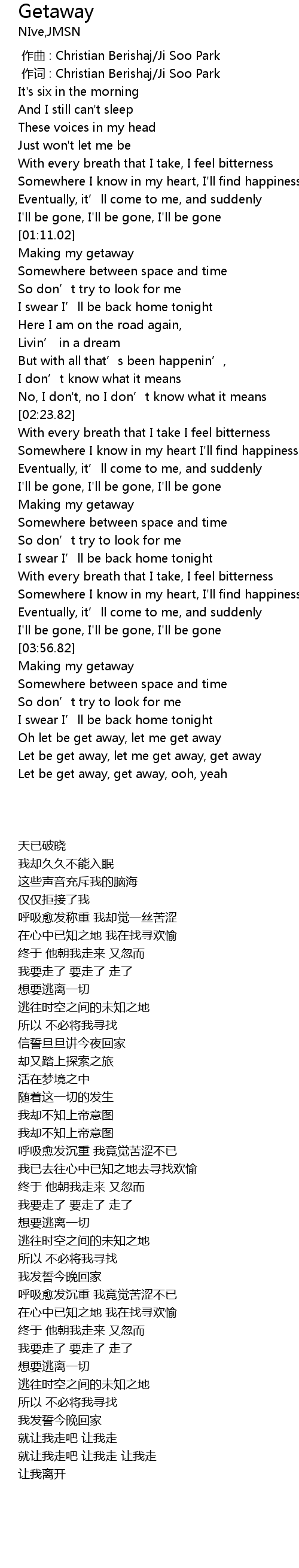 | [00:01.000] | 作词 : Christian Berishaj/Ji Soo Park |