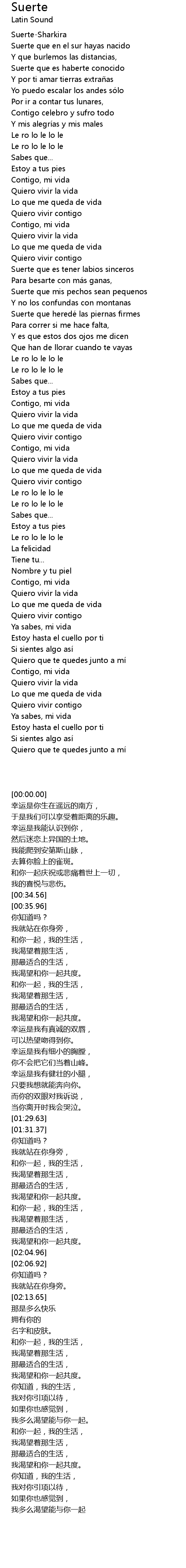| [00:00.00] | Suerte-Sharkira |