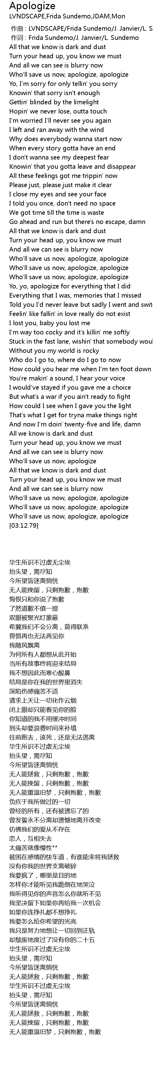 | [01:11.83] | Who'll save us now, apologize, apologize |