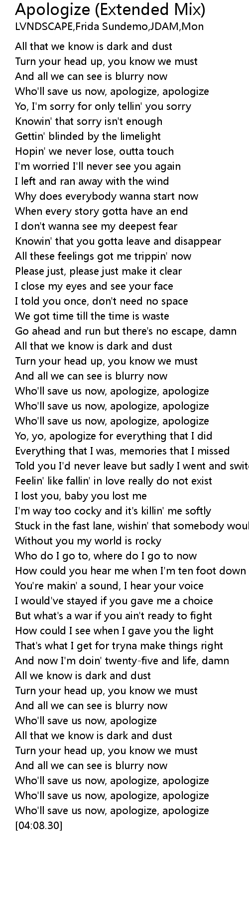 | [02:16.24] | Who'll save us now, apologize, apologize |