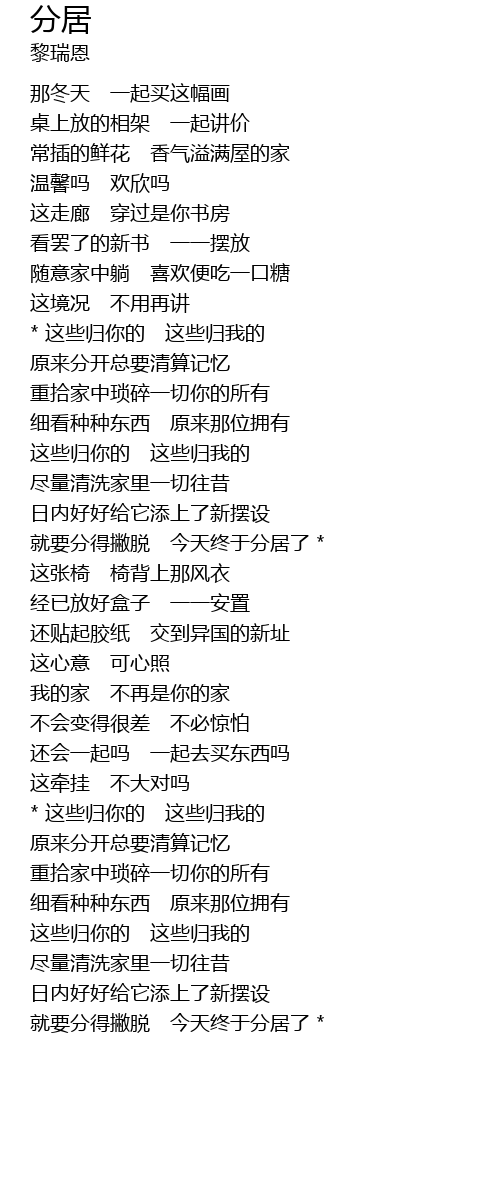 | [04:02.97] | 就要分得撇脱 今天终于分居了 * |