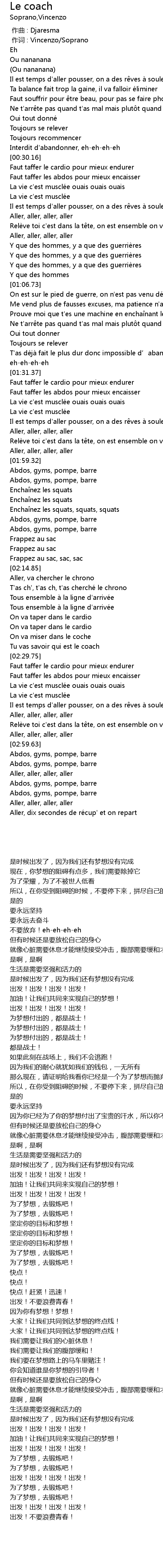 | [00:44.96] | Il est temps d' aller pousser, on a des r ves à soulever |