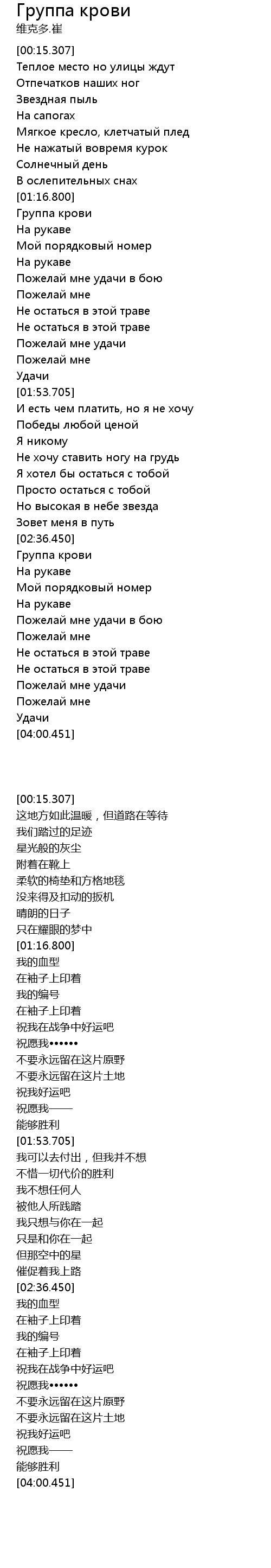 | 歌曲 | Группа крови |
