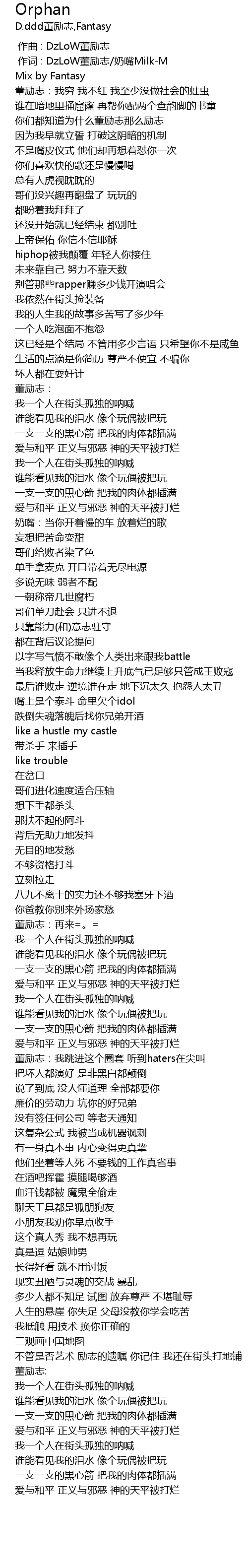 | [00:00.789] | 作词 : DzLoW董励志/奶嘴Milk-M |