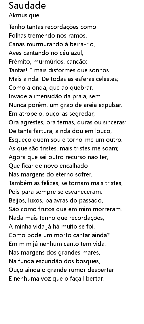 | Tenho tantas recordações como | |