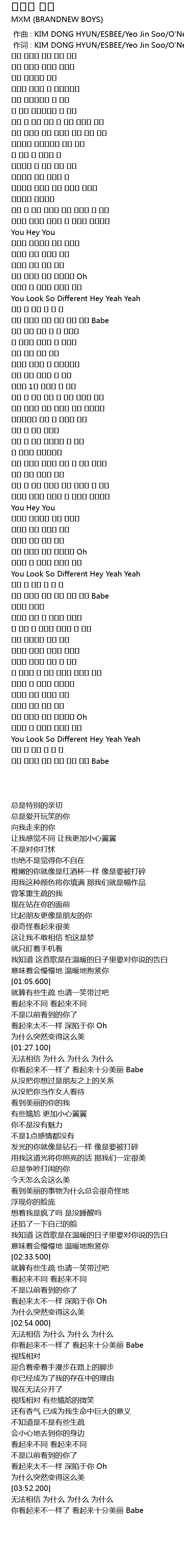 | [01:37.600] | 네가 다르게 보여 아주 예뻐 보여 Babe |