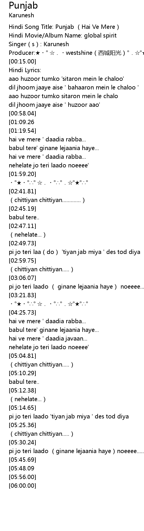 | [00:02.00] | Hindi Song Title: Punjab (Hai Ve Mere) |