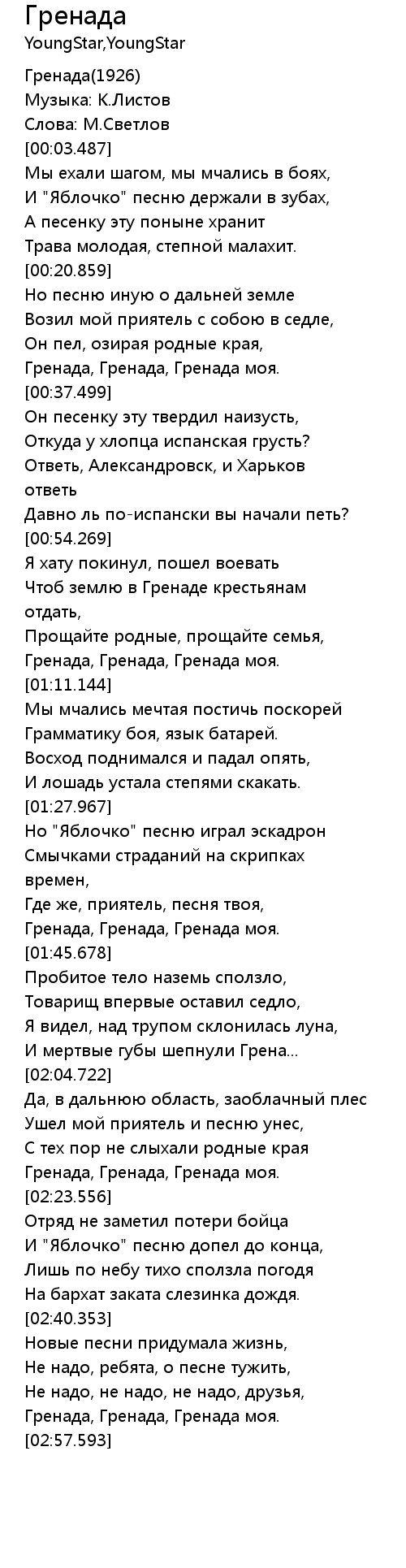 Гренада, Гренада, Гренада моя. |