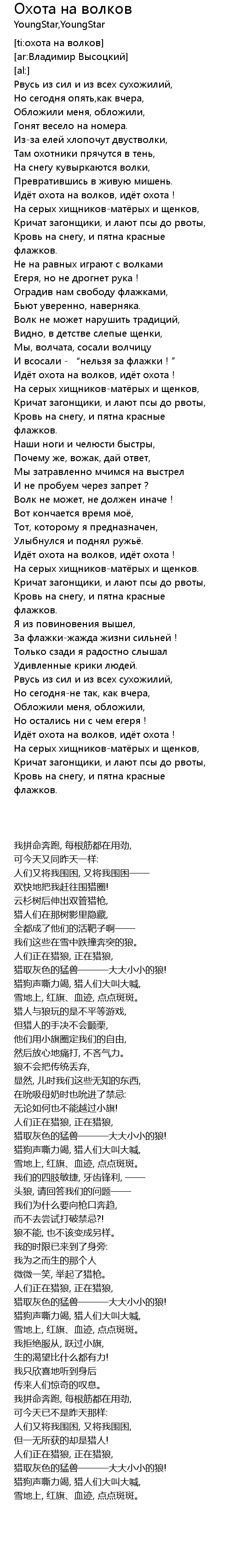| [02:42.34] | Идёт охота на волков, идёт охота! |