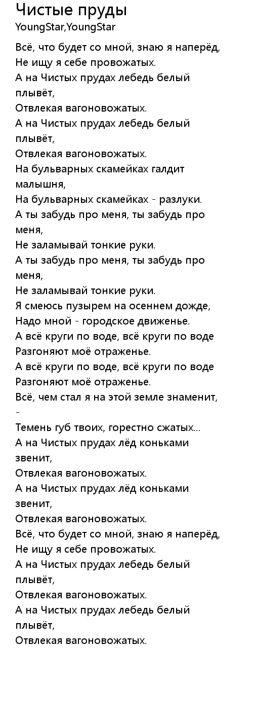 Чистые пруды 歌词