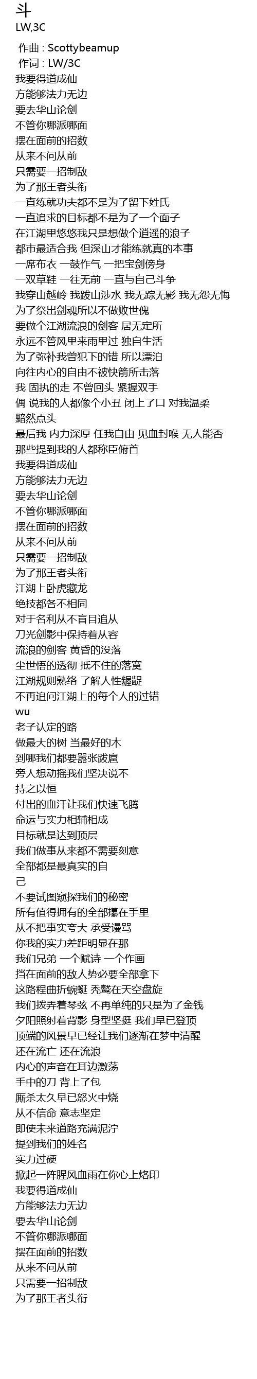 | [00:01.000] | 作词 : LW/3C |