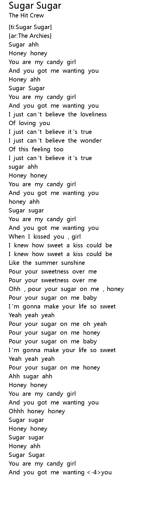 | [01:39.79] | Ohh ,pour your sugar on me ,honey |